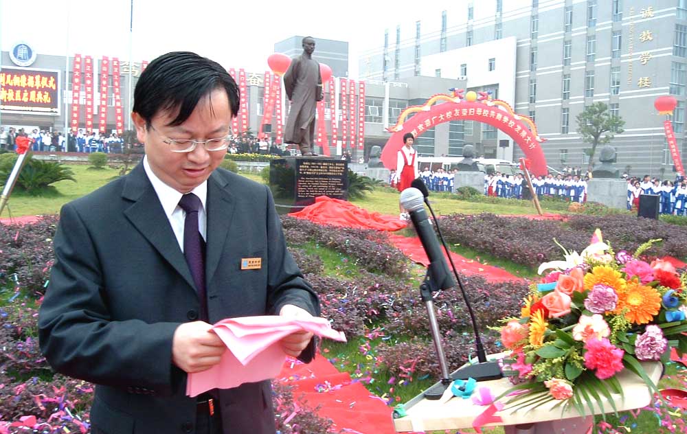 黄水宁校长在朱剑凡先生塑像揭幕仪式上致词