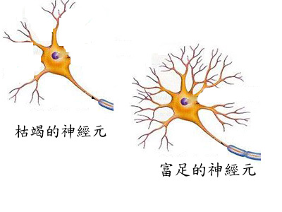 1993)。具有挑戰性的感官刺激猶如腦的營養物。圖4對此了枯竭的神經元與富足的神經元之間的區別。
